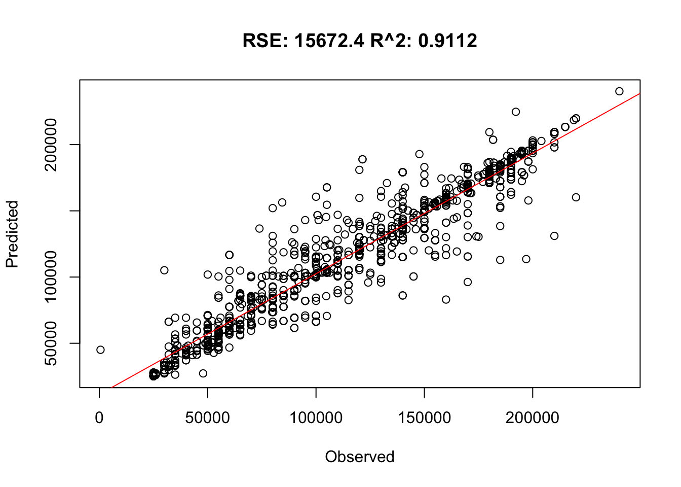 The best model shows an R2 of 0.91, which is very good. The RSE is around 15000, which is very good for a dataset in which the IQR is around 45000, three times that.